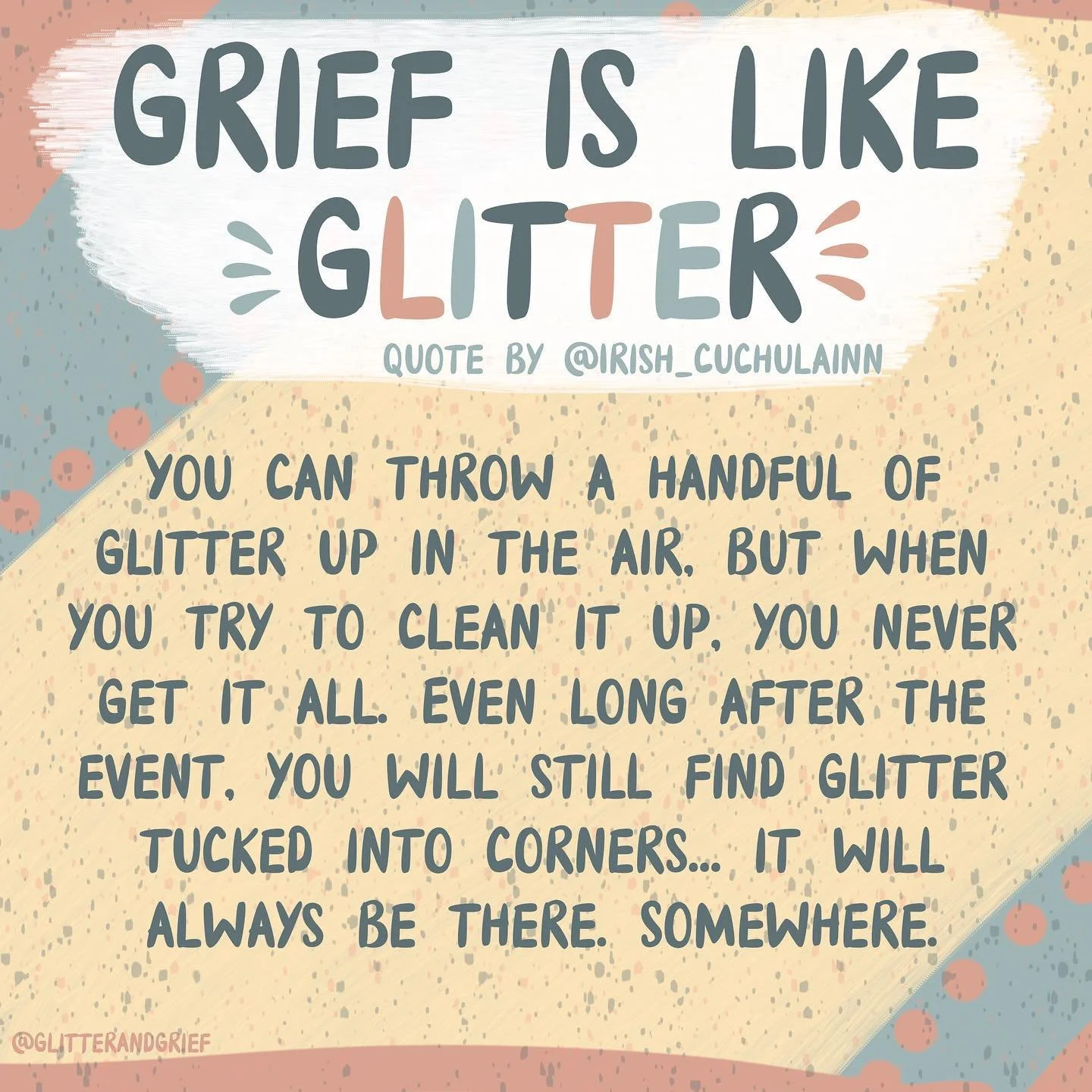 This healthy reminder about grief… Grief does not happen in stages. Grief is not a destination and one day we’re healed or “over it.” Some days you might be fairly glitter free, other days you might be covered in it.
